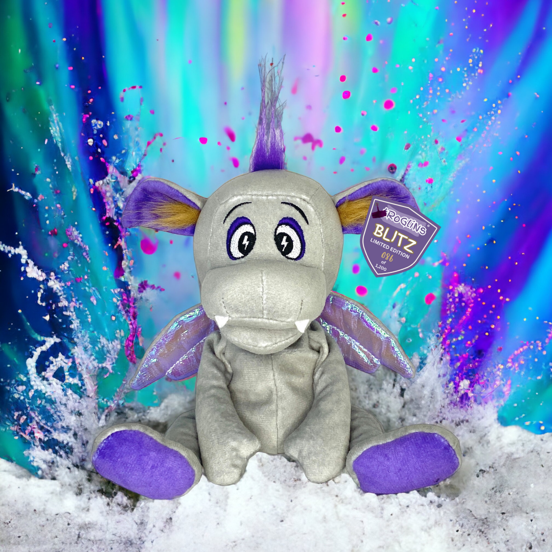 Made from a stone grey plush fabric with our signature Troglin purple features, this little character is a must have for any plush collector's collection!