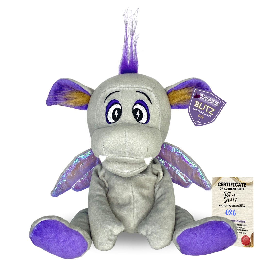 Like all Troglins, Blitz proudly wears an individually numbered tag in the left ear along with a gold foiled certificate of authenticity to show you have found an original limited edition piece from The Prototype Collection.