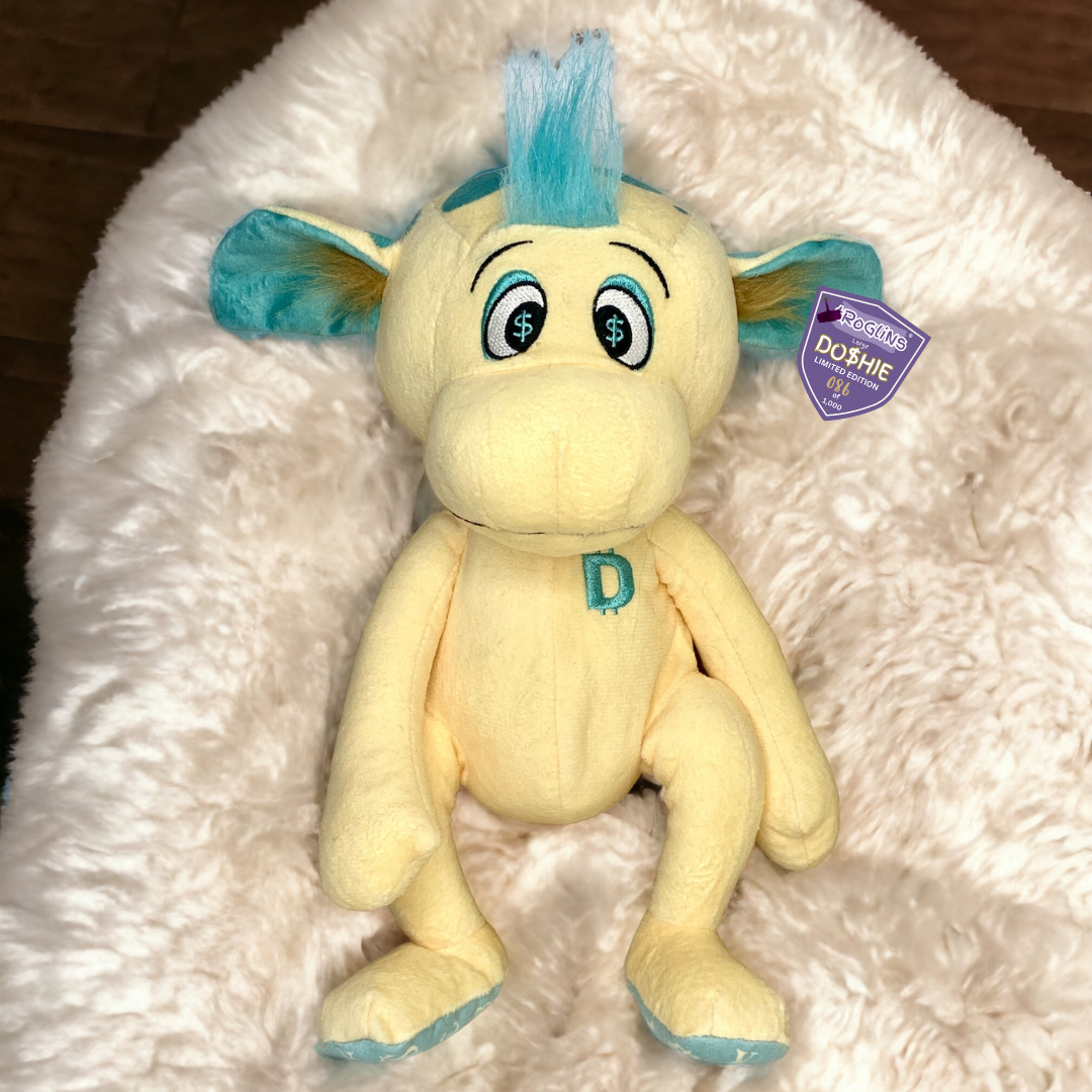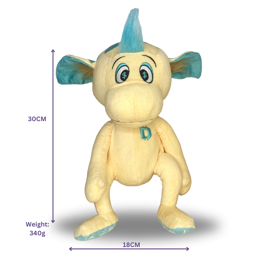 Made from a creamy-lemon plush fabric with dollar-green features, this little character is a must have for any collector's collection!